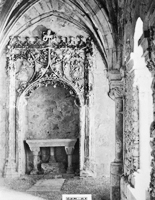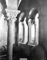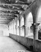 Images from the Archive Thirty-two images of the monastery in situ are included in the archive. The exterior view features the apse, bell tower, tile roof and fortified wall. The second image shows the east walk, upper cloister, with its colonade and vaulted wooden ceiling. The third image shows the interior of the Chaper House with its beautifully carved capitals. The fourth images features a Gothic altar and a stone altar table. Fortunately, these details remain intact and are now installed in the Monastery's final reconstruction in Dade County, Florida.