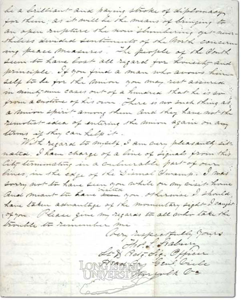 Civil War Letter to John Williamson from First Lieutenant Thomas Seabury